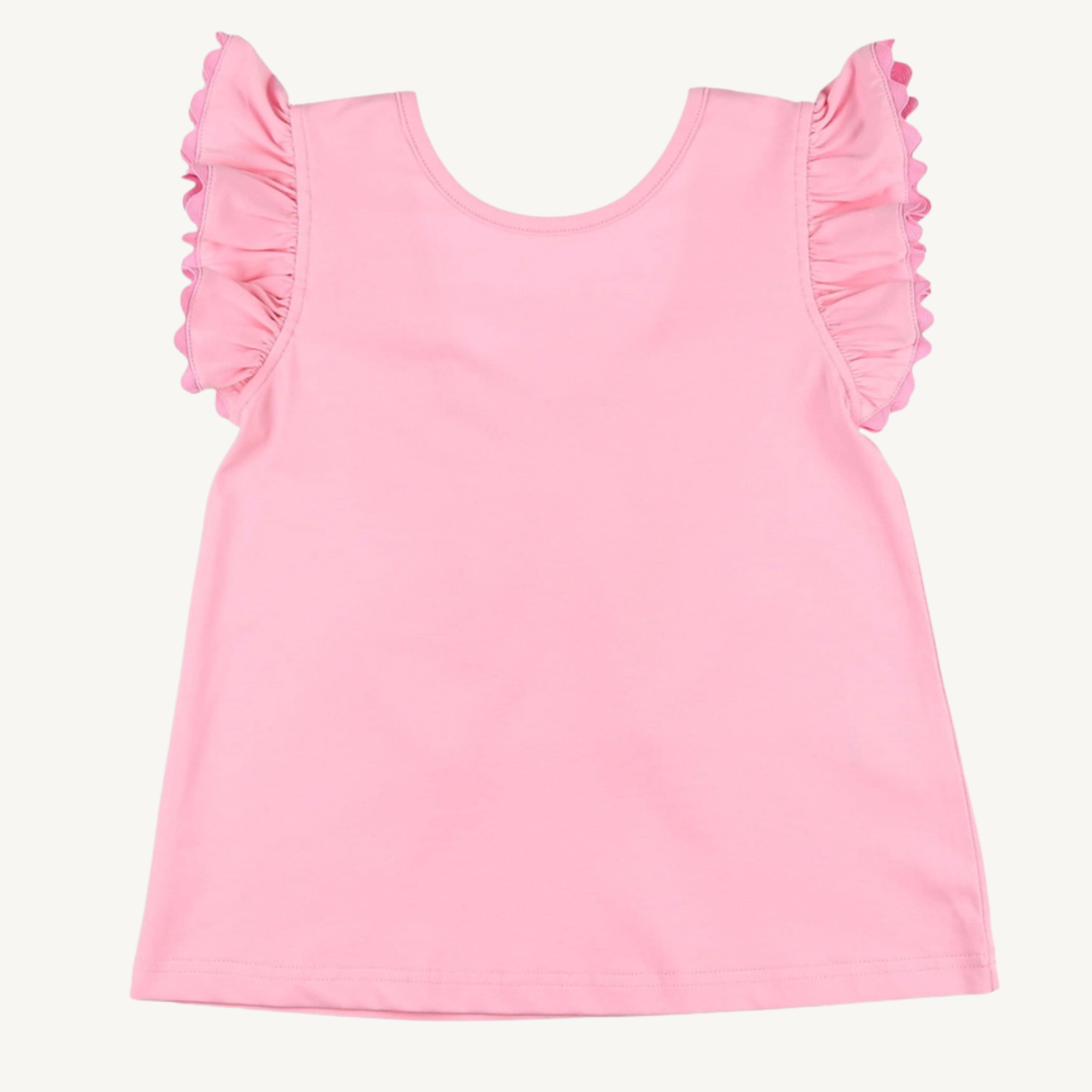 Versatility at its best! A classic staple for enjoying the spring and summer activities, the girls Pink Petal Bow Back Top from Serendipity, is a must for her adventurous wardrobe. This adorable girl's summer top features a pretty pink soft knit fabric with sweet pink ric rac trimming the flutter sleeves and the large pink bow at the back. So cute and comfy!